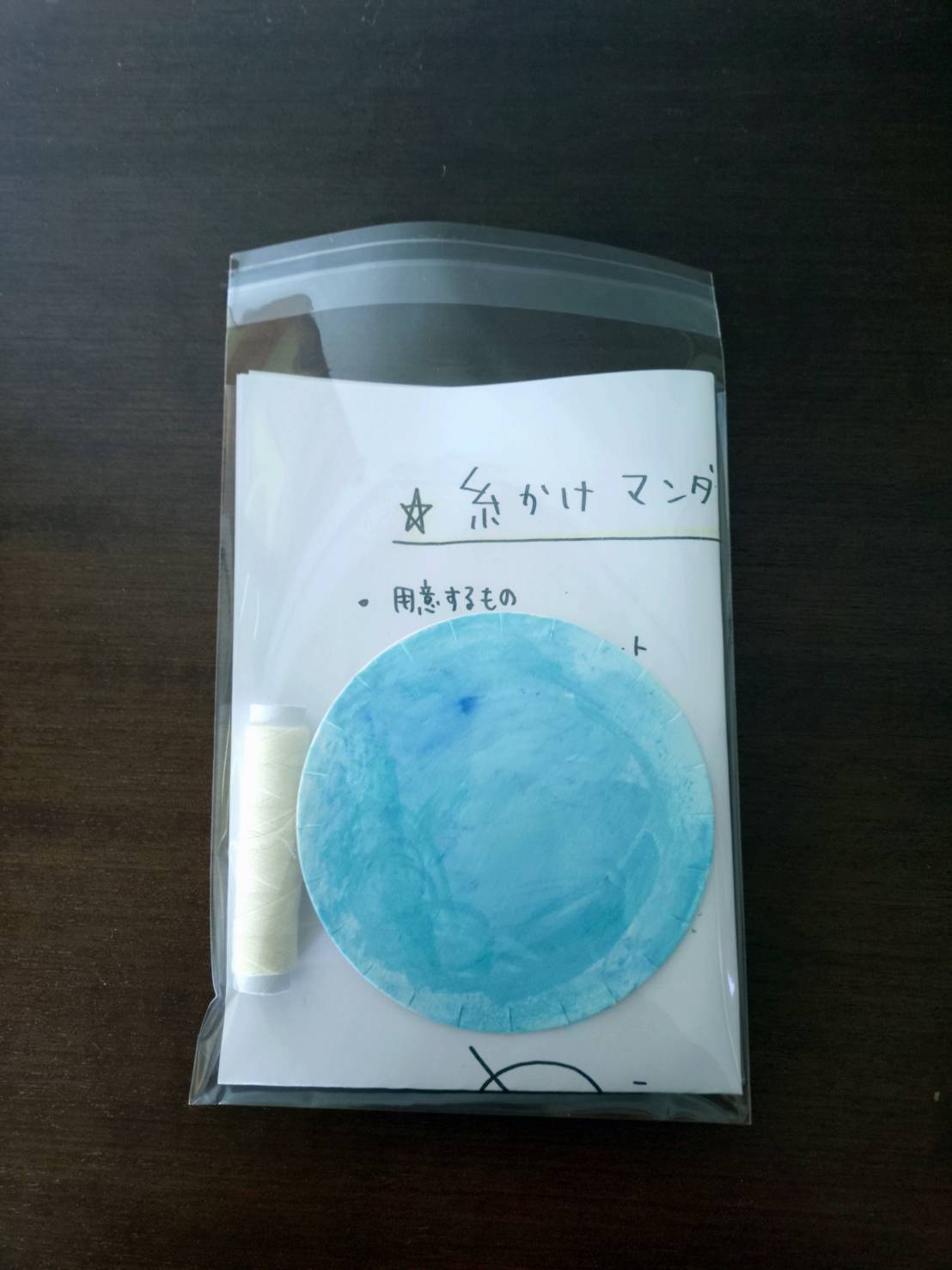 この商品には、糸かけマンダラを作る台紙と糸が1つずつと作り方が入っています。