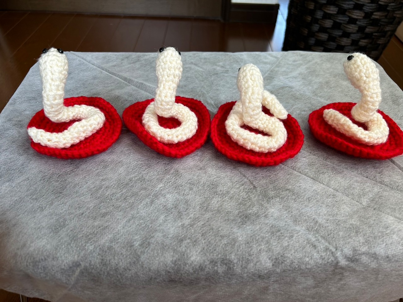 ※お届けするのは、毛糸の鏡餅と巳1体(写真1枚目)です。