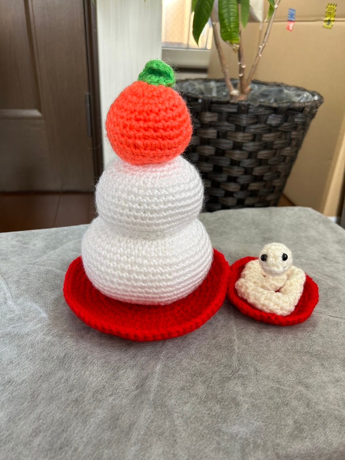 毛糸の鏡餅と干支の巳。